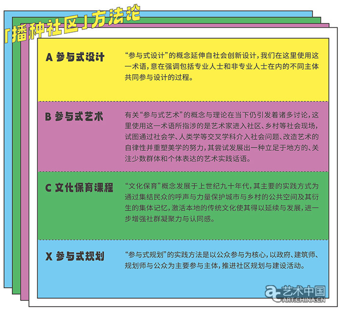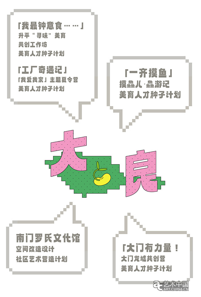 策展人駱鈺檳、林可詩在展覽前言中指出:“本次展覽為「和地在創」項目下社區藝術營造計劃與美育人才種子計劃的第一期成果聯展。雖是“成果”展,我們卻將其命名為“播種社區”。我們都明了,「和地在創」的社區藝術營造實踐還遠未到收成之時?!安シN”有幾層意涵:一為「和地在創」第一期的行動,促動并聯合了政府、學院、機構、組織等多方力量深入社區,在各個層面播撒下社會美育與地方營造意識的種子;二為第一期的社區藝術營造計劃與美育人才種子計劃,分別從空間和人才的層面為社區藝術營造實踐開拓了土壤;三為在社區中開展的共創營和空間改造項目的村民議事、工作坊等共創活動中,社工、青年藝術家、建筑師、設計師與居民們共同實驗和培育了公共參與的經驗與方法;最后,共創營和空間改造的開展,也為社區中的人、事、物種下了秧苗,它們或是傳承,或是希望,或是聯結,亦或鏈接過去與當下、彌合代際與群體的文化認同與集體記憶?!?/p>
