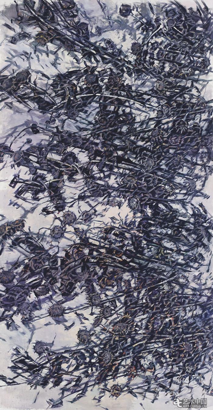 許江的葵表達的既是“空”,更是“有”,是“真空妙有”。許江畫葵,表面相似,實質不同。相似的是題材,不同的是形象;相似的是形象,不同的是筆法;相似的是筆法,不同的是情調……我們在許江的葵中沉思得越深,看見的相似與不同就越多。許江借助相似與不同的對比,突顯的是“有”的差異。