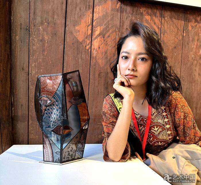 孟加拉國藝術家李萌(Maria Sultana Limu)與她的雕塑作品《自畫像》