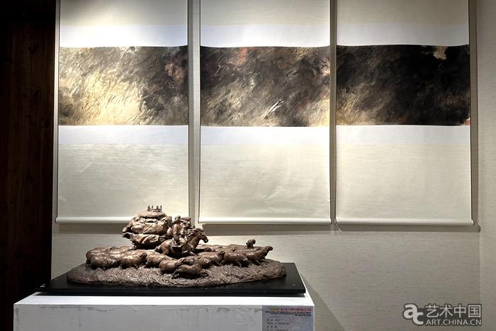 從左至右:北京工業大學藝術設計學院副院長武非、青年畫家李晶、貴州師范大學教授許泉的作品