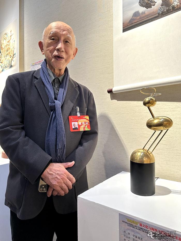 日本藝術家、東京藝術大學原副校長伊藤隆道與他的參展作品《游動的形與線》(動態雕塑)
