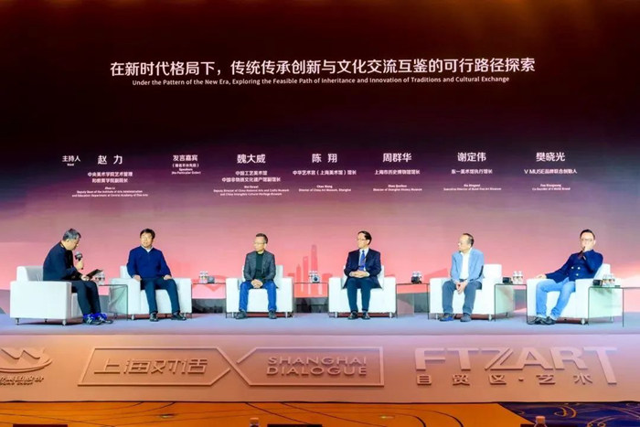 本屆“上海對話”在上海自貿區成立十周年之際,立足“以國內大循環為主體、國內國際雙循環相互促進”的新發展格局,堅持開放性、專業性和互動性原則,嘉賓圍繞“在新時代格局下,傳統傳承創新與文化交流互鑒的可行路徑探索”、“論藝術博覽會如何構建藝術品市場資源要素集聚,以推動上海加速建成國際重要的藝術品交易中心”、“從全球經驗與未來趨勢看浦東在布局藝術品拍賣產業中的機遇與挑戰”共三大主題進行討論并建言獻策。