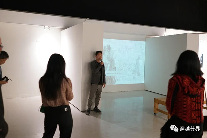 此次展覽匯集了研究數字和影像動畫的“穿越分界”成員們的多樣性藝術表達。展出了14位藝術家,包括計宇、左映雪、任喆、遲迅、張偉民、張味迪、張曉紅、愛華·周·皮爾斯、徐冰、徐瑞鴿、高霞、商徐宏、Daniel Traub和Sean Hongsheng Zhai (按中文姓氏筆畫排列)。此次展覽為觀眾提供了多角度的非傳統藝術體驗。