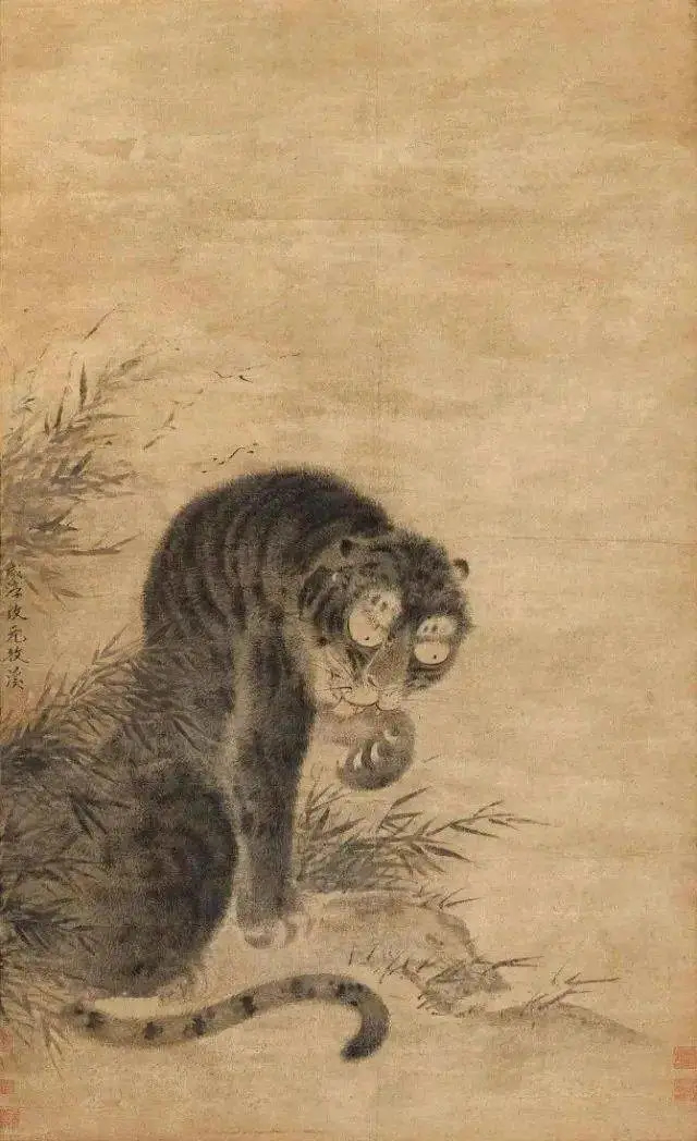 其實歷史上對牧溪施以惡評的評論家也懂得牧溪的好處,比如明朱謀垔在《畫史會要》中說:“法常號牧溪,畫龍虎、猿鶴、蘆雁、山水、人物皆隨筆點墨而成,意思簡當,不費妝飾,但粗惡無古法,誠非雅玩?!鼻懊鎸δ料碾S便點墨,風格簡約是贊賞的,但后面說他粗惡無古法,無非是說牧溪的畫沒有遵循古代畫家的技法。