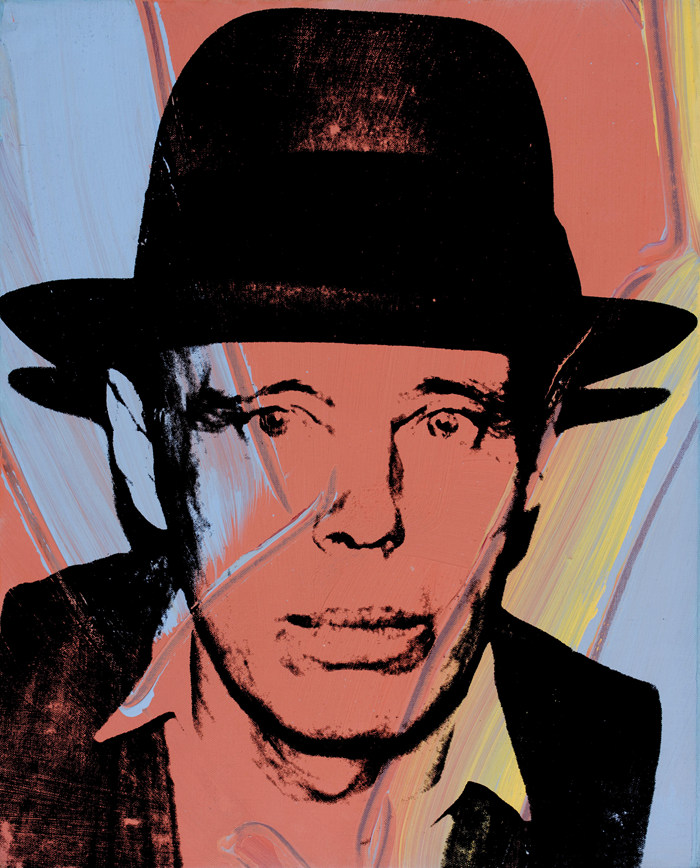 盡管兩位藝術家在美學和藝術哲學上存在巨大的差異,但他們都有煉金術般的能力,通過自己的創作使日常物品和圖像變得陌生,并對自我風格充滿癡迷:博伊斯被視作薩滿藝術家,他的神秘起源于游牧民族韃靼人將他從墜機事故中解救;而沃霍爾則將自己塑造為“波普教皇”的公眾形象,他戴著銀色的金色假發,讓人過目難忘。