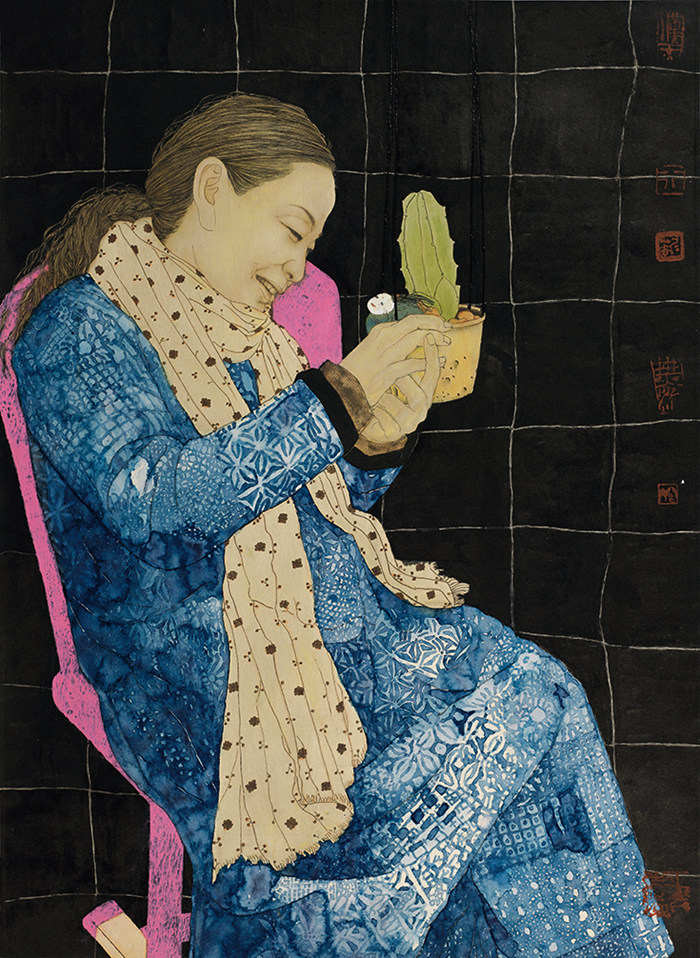 王仁華:當時是在中國畫系,一年的時間,花卉、山水、人物都有。胡明哲老師剛從日本回來,一下把我帶進了一個從世界觀重新認識藝術的新見解之中。當時還有劉金貴、田黎明等老師,都對我影響特別大。我飯也不吃,把所有的錢都用來買書,買了6箱寄回去。進修之后,才覺得我前面那一段業余。等我1998年回到合肥,整個一年都不會畫畫了。因為在北京的時候,我們看的、學的和過去是不是一回事,一下就不知道該怎么畫了。到1999年,突然一下開竅了。我開始去畫舞臺上的戲曲,但不是畫這些已經穿好服裝的表演,我覺得要畫它背后的東西,畫內心,畫世界、畫眾生。
