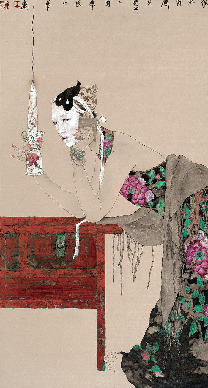 王仁華說:“我愿真誠地表達我生命里汪洋恣肆的美,半真實、半虛無;半工筆、 半寫意;半水墨、半色彩;半思古、半尋新?!边@是王仁華生命的一種姿態,是她自由舞動的靈魂,是半生活與半夢境的幻影。完美展現了王仁華內心的多面體,她的藝術也在這半真半虛中綻放,心靈在“亦真亦幻”中舞蹈。