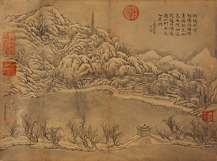 董邦達 西湖十景冊-斷橋殘雪 紙本墨筆 29×38cm清代