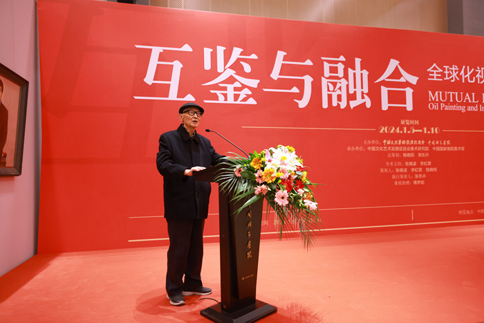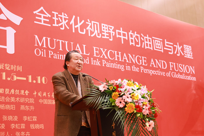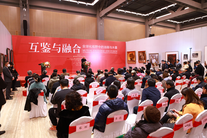 1月5日,由中國文化藝術發展促進會、中國國家畫院共同主辦,中國文化藝術發展促進會美術研究院、中國國家畫院美術館聯合承辦的“互鑒與融合——全球化視野中的油畫與水墨”展在中國國家畫院明德樓開幕。