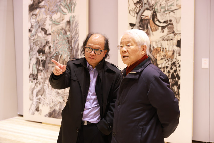 此次展覽以四位先生的作品為核心,旨在向這四位藝壇名宿的九秩人生致敬,感謝以四老為代表的前輩們對中國藝術作出的卓越貢獻。此外,展覽還邀請了20余位來自中國畫和油畫領域有一定代表性的畫家,作為美術界的中堅力量,他們的作品一方面表達出對四位前輩的敬意,另一方面也顯示了當代美術創作的活力與水準。只有通過藝術的對話,來自西方的油畫和來自中國的水墨畫才能夠充分發揮各自的魅力,展現人類藝術的智慧;只有通過藝術的交流,才能融匯東西方優秀的藝術,呈現人類思考的精華。開幕式嘉賓云集、氣氛熱烈。