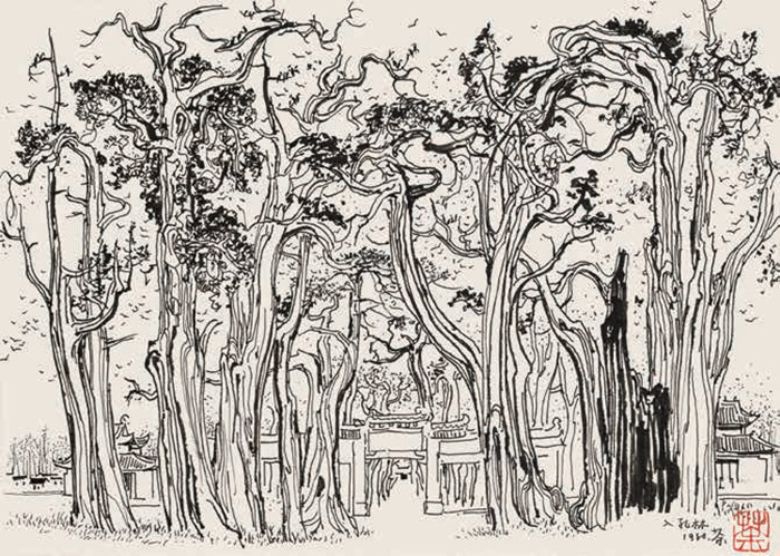 入孔林,吳冠中,素描,1980年,27cm×67cm