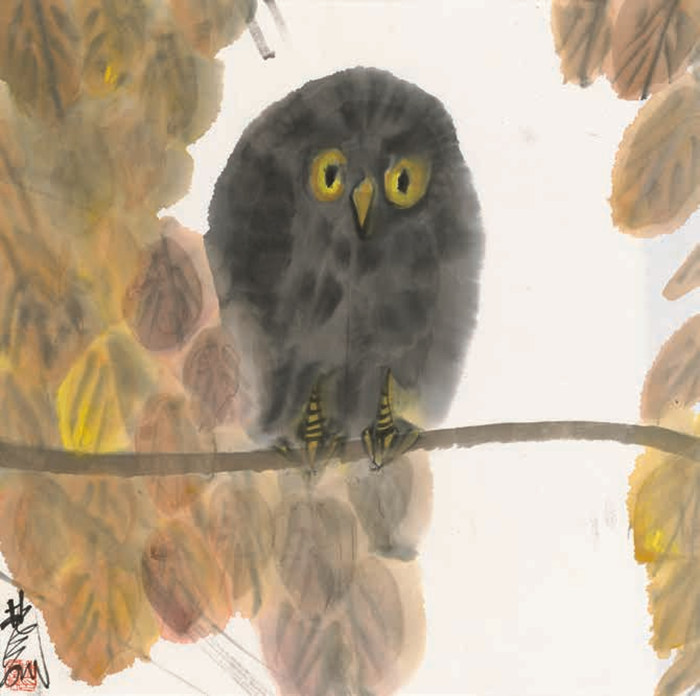 貓頭鷹,林風眠,紙本設色,1960年代,45cm×45cm