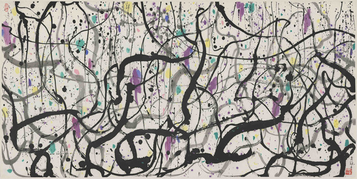 吳冠中和傳統筆墨進一步劃清了界線。他提出“筆墨等于零”,認為筆墨只是工具和手段,不應成為創作的桎梏。因此他從造型、點線面的構成和色彩關系等入手,自由地使用水墨媒材,甚至用排筆、大刷子或針筒注射隔空滴灑等方式去打造各種畫面效果,由此打開了水墨藝術的更多可能性。