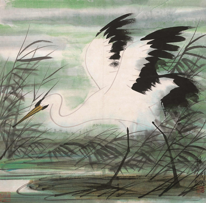 秋鷺(之一),林風眠,紙本設色,1970年代,68cm×68cm