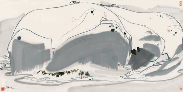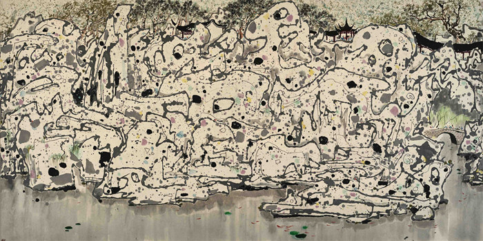 獅子林,吳冠中,紙本設色,1983年,173cm×290cm