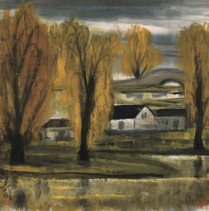 柳林,林風眠,紙本設色,1950年代,66cm×66.5cm