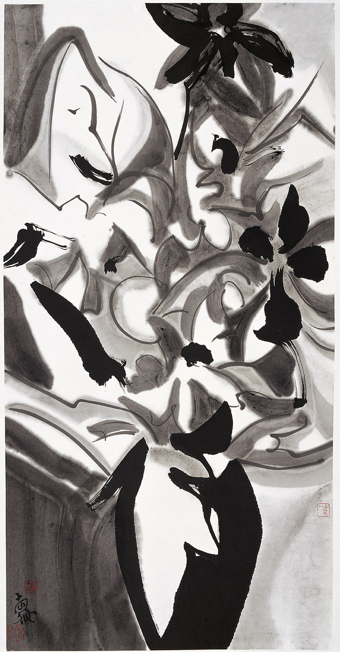 像剛才說的兩種天體運動,到底哪一種是真實的,只有天體物理學家他們能回答。但是我們從繪畫的角度講,物象、空間、運動,這些是渾沌一體的,不分家的,繪畫不能有分別心。以桌上的這瓶花為例,我看見的首先是運動,不是花,是運動。要我畫,先畫上去幾個黑點,看它們怎么運動,這個運動是什么關系,什么節奏,先把那個拿下來,吳先生叫譜曲,像潘天壽先生、齊白石可能叫章法,西方人一般叫構圖,就是把這個空間占有了,這個占有一定是在限制中的運動,你這張紙是方、是圓、是長、是橫、是豎,決定著你筆墨怎么運動。