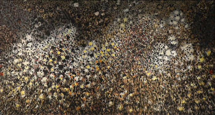 再有,作曲不太強調文學的內容,不同的內容可以是一樣的旋律。繪畫抽象的節奏和韻律作為空間運動的具體體現,跟你的心、體、手連在一起,跳動、共振。這個時候,一切都忘掉了,自己也忘掉了,忘我了,因為同時跳動,會從你的心里浮現出你潛在的記憶,即給你生命印象最深刻的那些記憶,記憶最后變成了想象。像我童年生活給我的記憶很多很深,那些空間的韻律就會把你童年河床底下的東西泛起來,印到畫上,這是自覺不自覺的,不是我有意要往這兒走,而是它自動就把這些東西勾出來了,映照出來了。所以,題材在你的潛意識里,平常給你生命里留下的是什么痕跡,最后都會泛出來。我剛才說的那個看不到的,就是你對繪畫的認識,對于宇宙的認識,那個就叫理性。西方人也強調畫后面的那個理性,中國人強調畫后面那個“道”,那個“道”就是理性的一個思考,最終繪畫都在探索自然最深處那個“道”的奧妙和人性之情,從原始藝術一直到現在,繪畫在不斷追問這個問題,繪畫實際是人類不斷探索追問自然和人性的圖像語言。