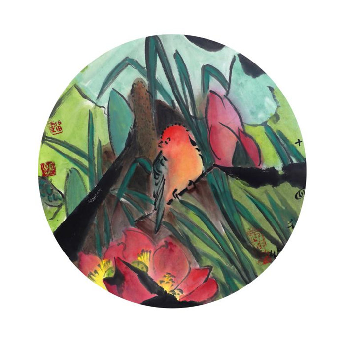 陰澍雨:這兩年我跟劉老師接觸挺多,因為我自己也畫花鳥畫,所以我們更多的會交流具體的畫法。陳老師從構圖角度切入到劉先生的藝術語匯,是一個很好的代入點。于洋兄談的也十分深入。我開始是學傳統風格的花鳥畫,特別是對于明清以來的傳統花鳥畫的研究,做得相對比較深入。我看劉先生的畫之后,發現差異性很大,這個差異指的是個人自身的知識結構和成長經歷。因為我是在杭州中國美院讀的本科,一直接觸的是從吳昌碩、潘天壽這樣下來的大寫意的脈絡,在這套體系當中,于洋兄也提到了,按照傳統的構圖方式,我們講的是章法,具體畫面當中講的是“開合”“穿插”“呼應”這些關系,我在看劉老師的畫時,會有意識看他的開合關系怎么處理。這時候我覺得劉老師以他的語匯已經解決了這個問題。就是中西方藝術語匯當中,劉先生自己說的,他并不是找差異,而是找共同點,找相似性的東西,都可能在他的繪畫當中得以體現。