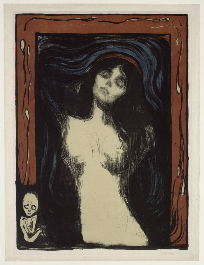 《圣母瑪利亞》,蒙克,1895/1902,彩色石版畫&彩色木刻版畫