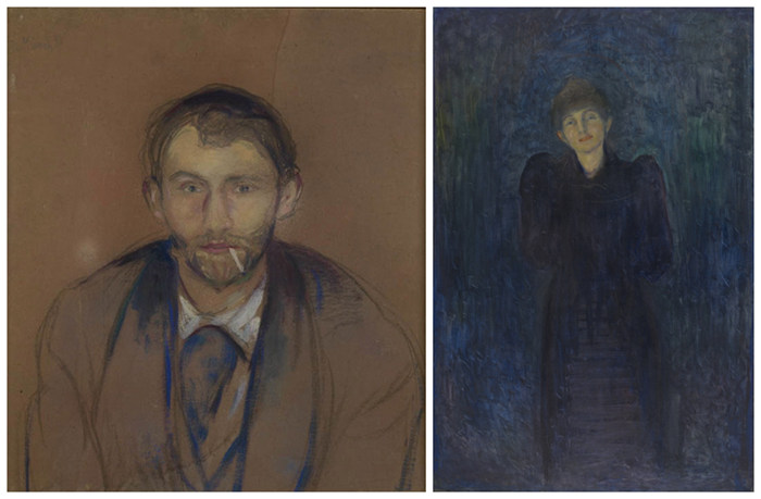 蒙克,挪威蒙克美術館藏品,左圖:《斯坦尼斯瓦夫·普日貝舍夫斯基肖像》(1868-1927),1895;右圖:《達格妮·尤爾肖像》(1867-1901),1893