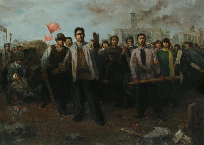 收回英租界 張善平 油畫 141×200cm 1981年 武漢美術館藏