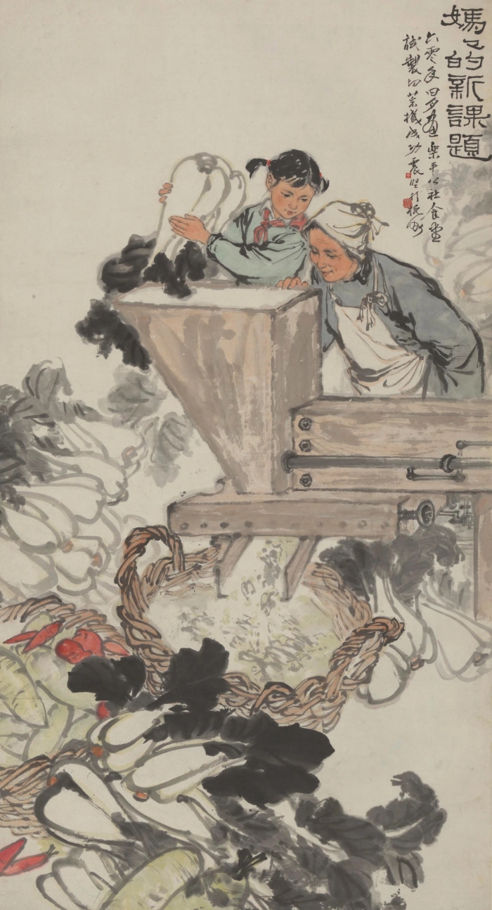 媽媽的新課題 李震堅 中國畫146.5×79.2cm 1960年 浙江美術館藏