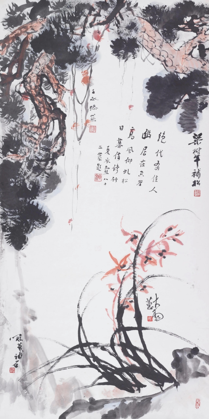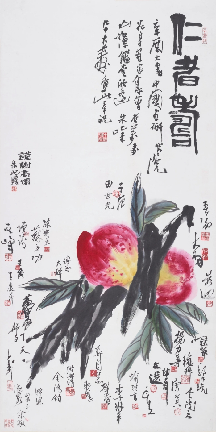 仁者壽 崔子范、高冠華、田世光、孫其峰、王子武、金鴻鈞、盧坤峰、陳大羽、黃胄等崔子范、高冠華、田世光、孫其峰、王子武、金鴻鈞、盧坤峰、陳大羽、黃胄等 中國畫 137×68cm 1981年 中國國家畫院美術館藏