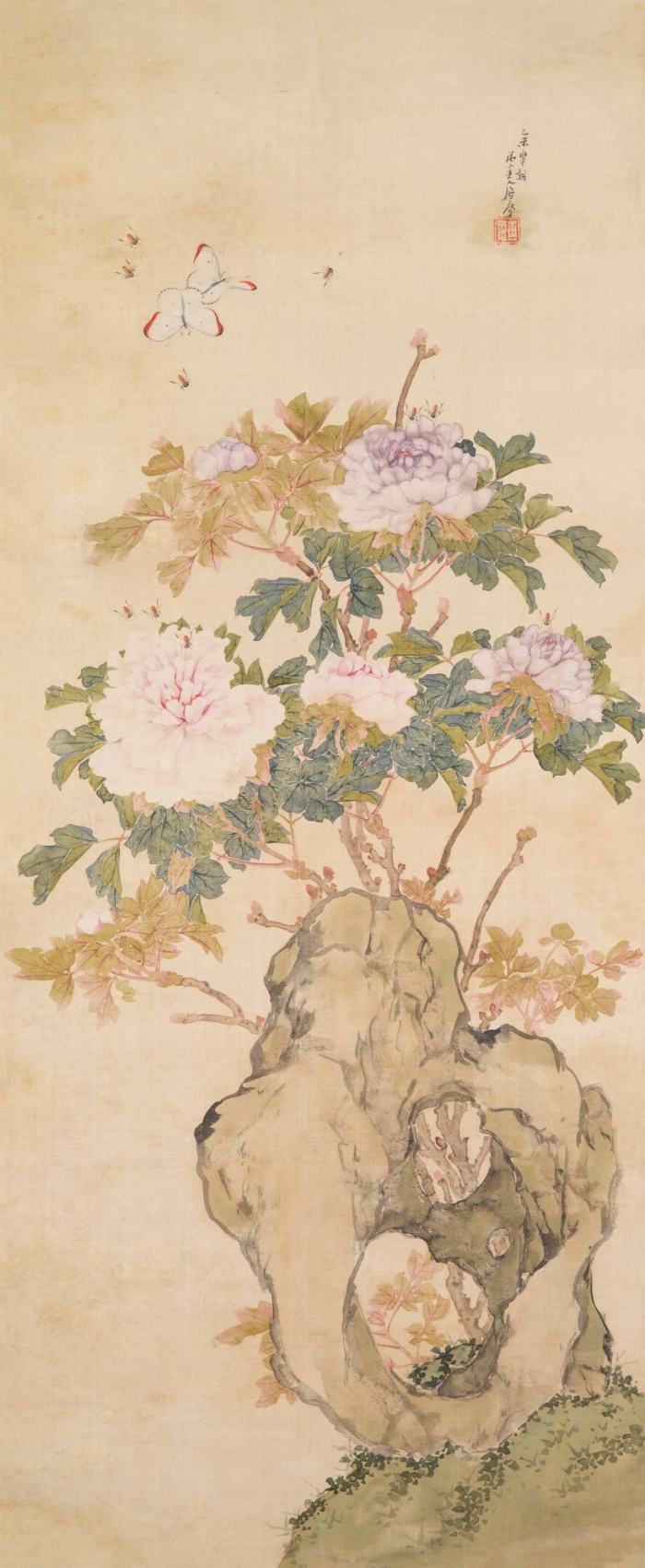 蜂涌雙蝶 居廉 中國畫 106×34cm 1895年 廣東美術館藏