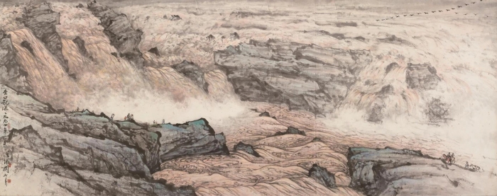 壺口觀瀑 關山月 中國畫 144×364cm 1994年 深圳市關山月美術館藏