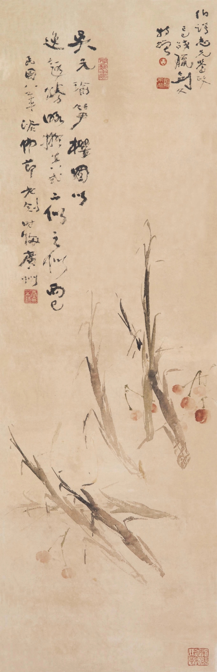 筍櫻圖 高劍父 中國畫 112×47cm 1919年 廣東美術館藏