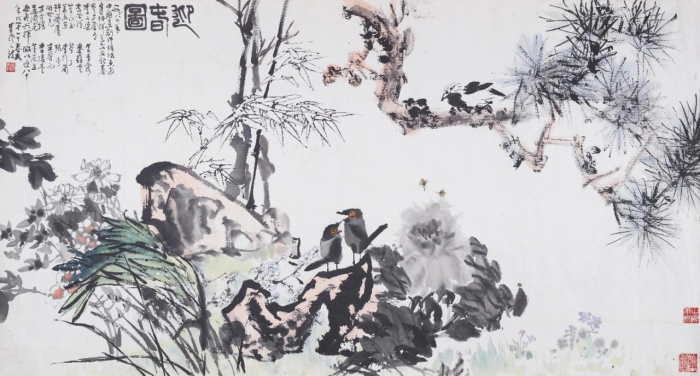 迎春圖 李可染、李苦禪、黃永玉、蕭淑芳、許麟廬、田世光等,吳作人題 中國畫 96×180cm 1980年 中國國家畫院美術館藏