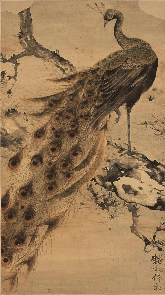 孔雀圖 高奇峰 中國畫 144.5×81cm年代不詳 廣州藝術博物院(廣州美術館)藏