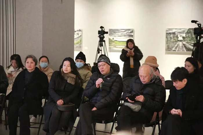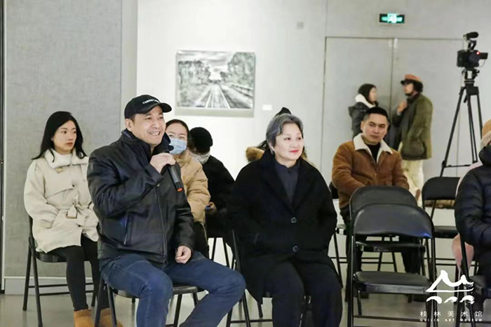我是來學習,因為我對攝影是外行,但是我喜歡聽喜歡看,這個倒是個人的除了國畫以外的“事業”。實際上藝術是一個角度,通過這個角度拿攝影去做藝術和國畫是一回事,都是用個人化的眼睛來看這個世界。實際上搞藝術無非就是兩個點,一個是語言的個性化,一個是圖式的個性化,這兩個個性化構成了一個藝術家所處的高度。金先生用自己的眼睛看世界,這個是我讀出來的,當然還有我對國畫的理解,作品有東方的韻味。進一步講,從個人的角度,用個人的語言來告訴我們(這些),我覺得來這里看了以后也受啟發。實際上我拍攝影作品是拍資料,我也很瘋狂地使用過DV、攝像機,就是用照相機把它們具體化。畫家是用畫筆來畫,攝像機還是有點特殊性,從選擇的角度、題材,比如說工業題材,有一段時間我也瘋狂地拍大量的爛廠房。從個人的藝術語言來說非常有內容,有個人對時代背景的看法。拍著拍著我就發現一個規律,一邊拍一邊被拆,那些老廠那些老房子很奇怪,不知道是通知我來了還是怎么樣,我拍了之后它們就被拆掉。那個時候沒有數碼,甚至用DVD拍,給我搞藝術創作形成了大量的素材??隙ㄒ彩莻€人化的角度,選擇比如那些老廠,原來的老房子,等等,就成了我個人藝術創作表現桂林的一個角度。我只是說,藝術家不管他從事什么類型的藝術創作,雕塑也好,繪畫也好,藝術種類盡管不同,但作為一個時代的藝術家,肯定要把語言個性化和圖式個性化這些東西表現于這個時代,無愧于時代,這是我們要做的工作。