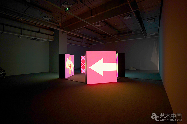 此裝置通過隨機符號的集合,探討了人們如何從這些符號中收集和投射意義。各式各樣的圖標隨機地在每個屏幕上閃爍,不斷變化,形成新的組合。這些符號富有暗示性,卻保持模糊不清,開放給觀眾解讀。