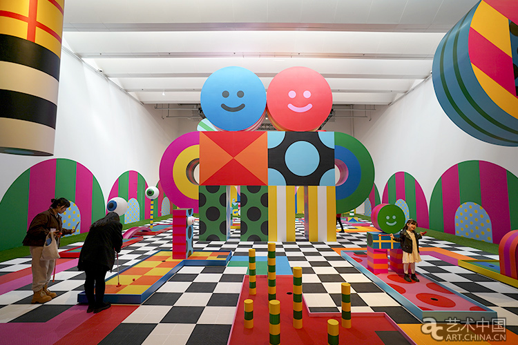 本次展覽中的《迷你高爾夫》是藝術家在2022年首次在倫敦展示的作品的第二次迭代。在這里展示的9洞球場是一個全新的設計,并且這次展覽也是它在中國首次亮相。通過這件作品,美術館空間被設想為一個完全沉浸式的互動裝置,這充分體現了藝術家大膽的設計手法,融入了一種新穎和趣味感。