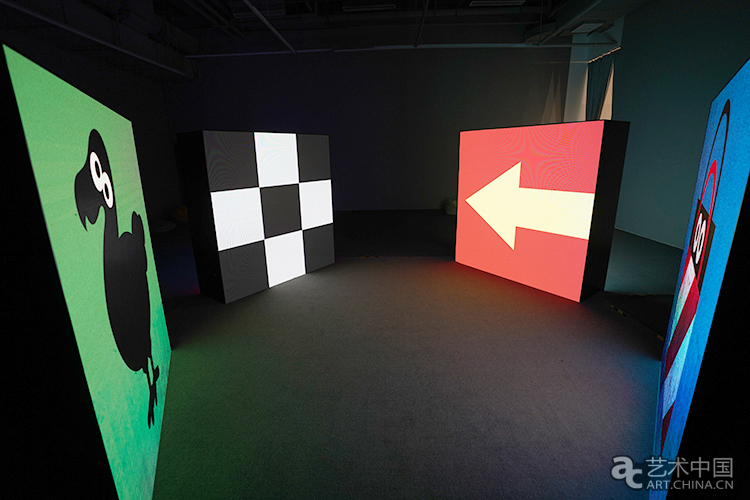 《符號流域》 2000 x 2000 x 600 mm 雙面LED屏幕,動畫作品,木質邊框