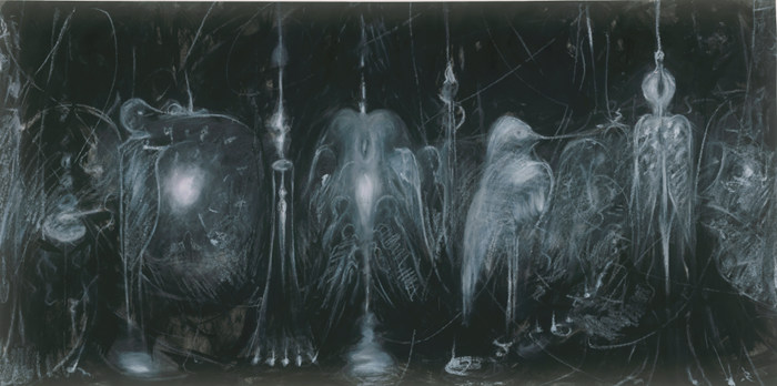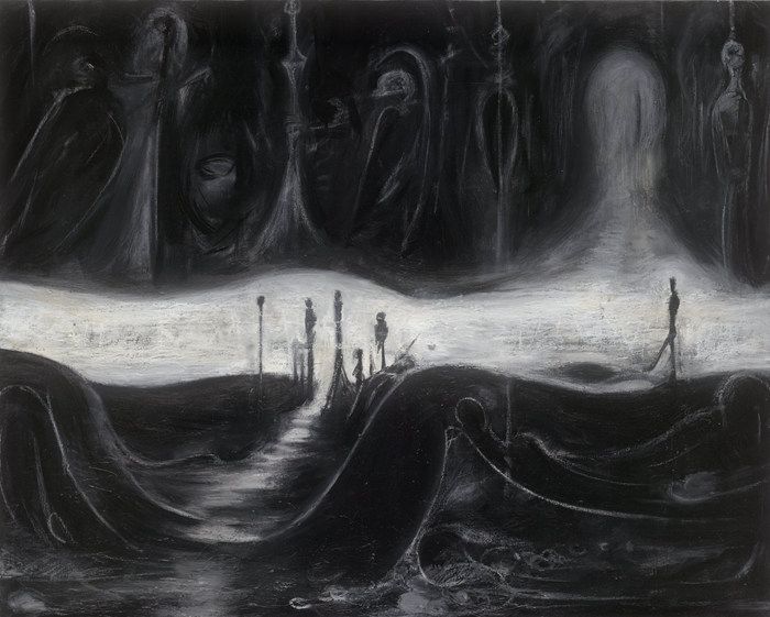 虛幻 紙本、油彩、油畫棒、墨 68x137cm 2023