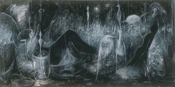 在探索過程里,從我心理上來說油畫與水墨沒有界限,我畫什么都行。如果水墨表達不了的時候,我會用油彩,甚至還用噴涂。在出版《世界名畫全集》的時候,我已經打消邊界的念頭了(笑)。我覺得沒必要給自己設置一個邊界,我并不是想當一名油畫家或裝置藝術家。藝術其實是自我的一種認知,是一種去認知的過程。