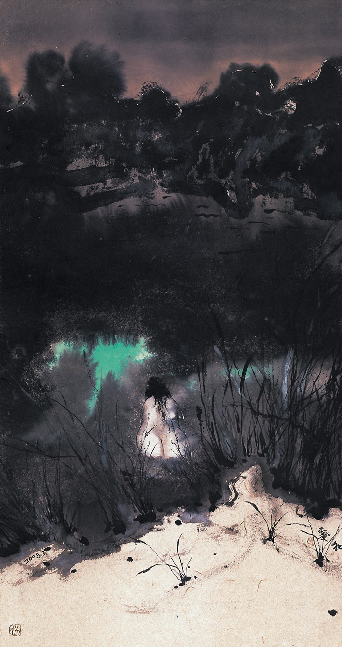 《入水》,紙本水墨,170 × 90 cm,2008