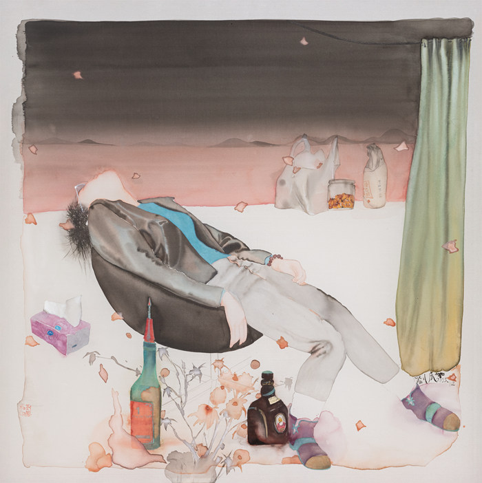 《不想》,絹本水墨,75 × 75 cm,2023