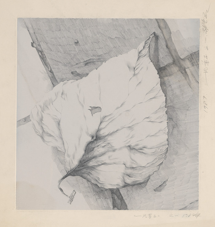 《一片葉子-1》,紙本鉛筆,40 × 40 cm,1987