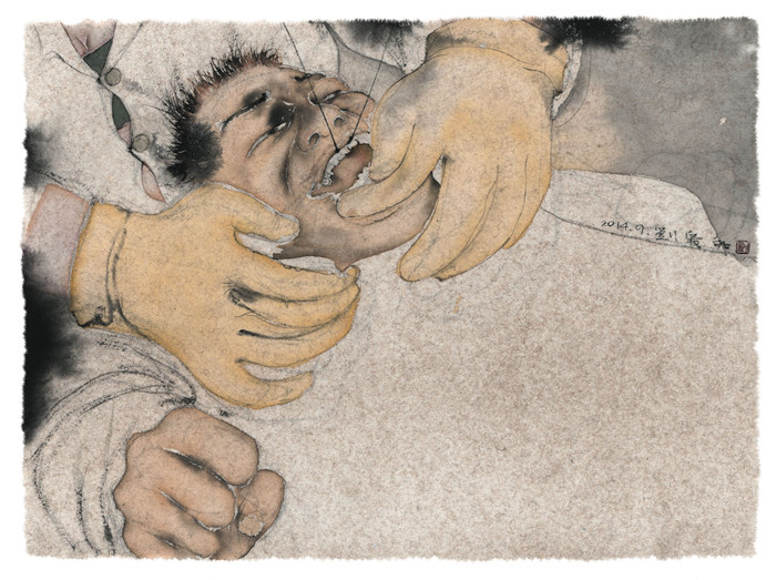 《拔牙》,紙本水墨,51 × 70 cm,2014