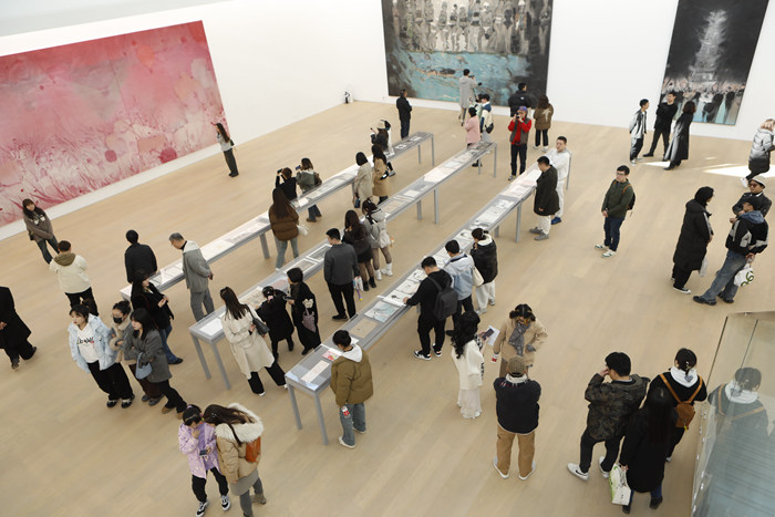 和以往的線索不同,展覽并未以正敘或倒敘的方式來回溯劉慶和的藝術歷程,而是采用雙線敘事的結構,以2006年以來最為代表性的巨幅作品和橫跨40多年的手稿的對比,作為開篇。