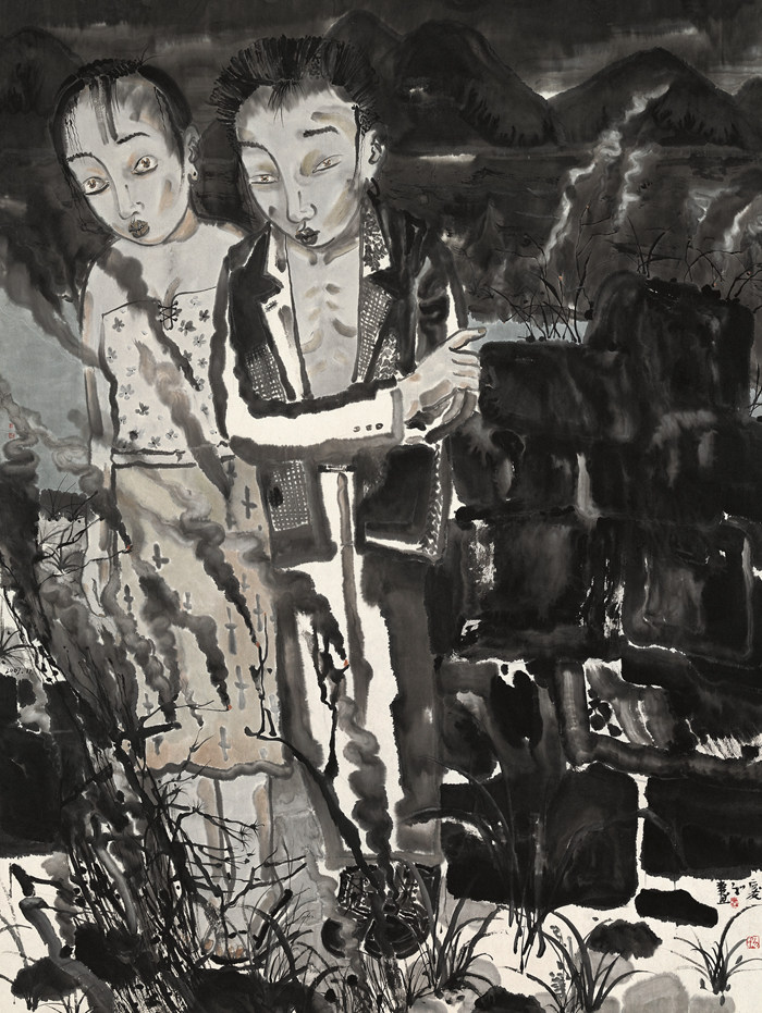 更為重要的是,劉慶和作品的開創性顯現了水墨這一媒介的超越性,它所提供的獨特感受,精準地捕捉了都市的虛像,更為本質的觸及屬于這時代特有的“時代情緒”。與張曉剛的大家庭、方力均的玩世心理、岳敏君大笑的人、毛焰所描繪的迷茫的青年人,一起塑造了那個時代中國肖像的巨變。