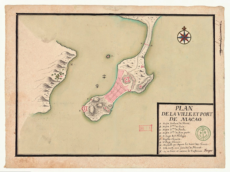 《澳門港城圖》Map of Macao City and Port,弗朗索瓦·費羅杰Fran?ois Froger,1699年,26X35cm,法國國家圖書館藏Collection of French National Library