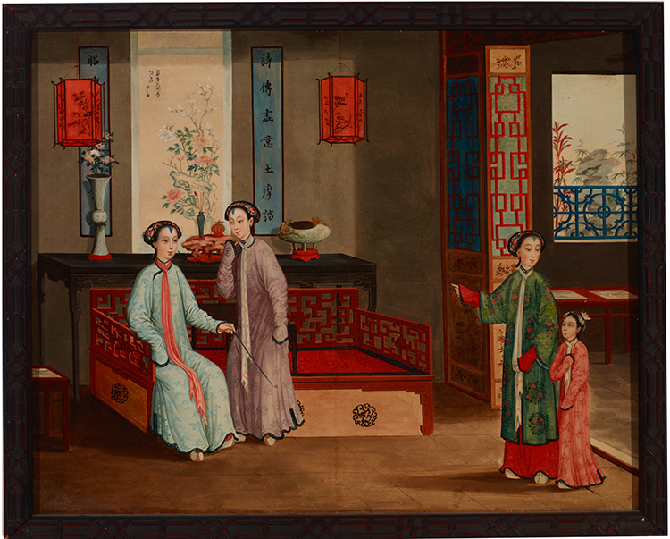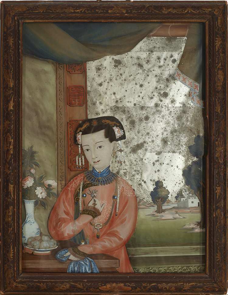 中國少婦像 Portrait of a Chinese Lady (傳)史貝霖 Spoilum (attribute to) 1770-1805年1770-1805 玻璃油彩背畫 Reversed Oil Painting on Mirror, With Original Gold Decorated Wood Frame 47.7X34.7cm 銀川當代美術館藏Collection of Museum of Contemporary Art Yinchuan