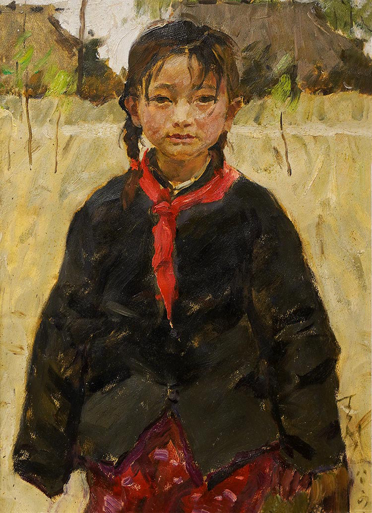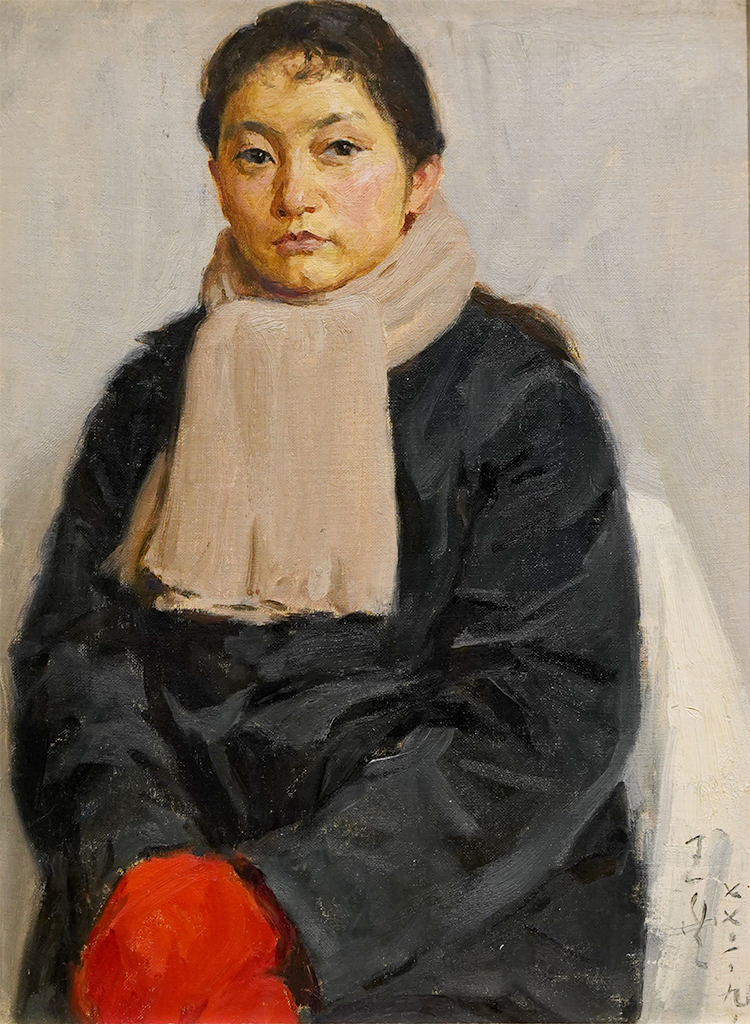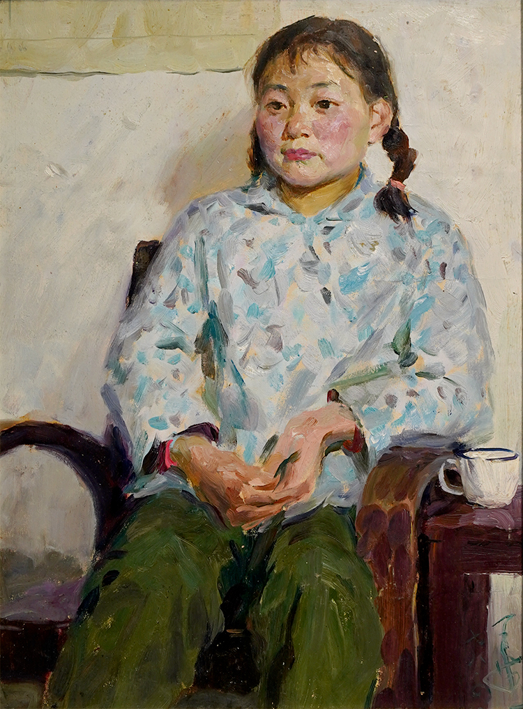《符蓮花》,36×49cm,1975。在湘西稿工作組時,徐立斌請了他下到的隊上的兩個女村民來寫生,一個叫付生花,一個叫符蓮花,近五十年了,竟還能記起她倆的名字和作畫的情狀。