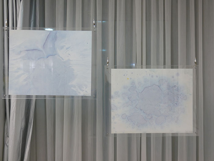 顏璐的作品包含著一種開放性和動態性。作品本身的材料和形式直接取決于藝術家的感受和表達。她并沒有因為在類似宣紙的媒介上創作就使用傳統礦物顏料,相反,她為了獲取更特殊的色彩效果,選用了色粉、丙烯等各種顏料來染色,這使得她的作品在經過水的暈染后,依然保持很強的色彩力度,甚至能表現出豐富的色彩灰度和靈動的邊界。她以化石中的生物剖面為靈感的作品仿佛再造一個紙上的生命——其實化石在被人類發現的那一刻起,就已經在某種意義上獲得了第二次生命。