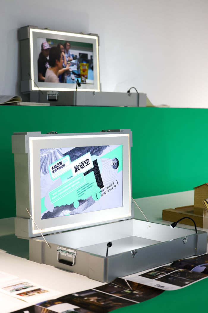 本次展覽以“感知地理”作為方法,結合世紀壇藝術中心的放射性展廳結構打造一個環狀的、多層次的展陳空間,用經緯交織的地理坐標,定位實踐現場。展場外環呈現出一百個美麗中國實踐案例,外環內側墻面上的大幅攝影以黃河、長江的流域和經濟帶為線索,呈現百姓家園建設的動人瞬間,而展場內的弧形長桌為地方政府提案、未來提案、現場工作坊的展區;內環為協作廳,展出感知地圖、實踐感知書展和案例文獻庫。